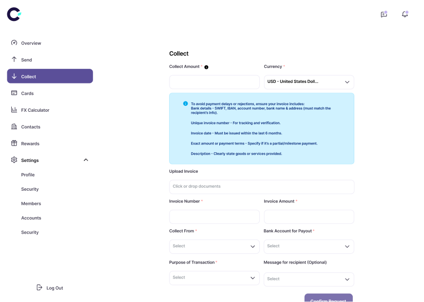 If you’re a corporate exporter selling goods across Africa and beyond, Cedar ensures you collect payments securely and on time in multiple currencies - USD, EUR, AED, GBP - without delays or FX shortages, so you can focus on growing your business.